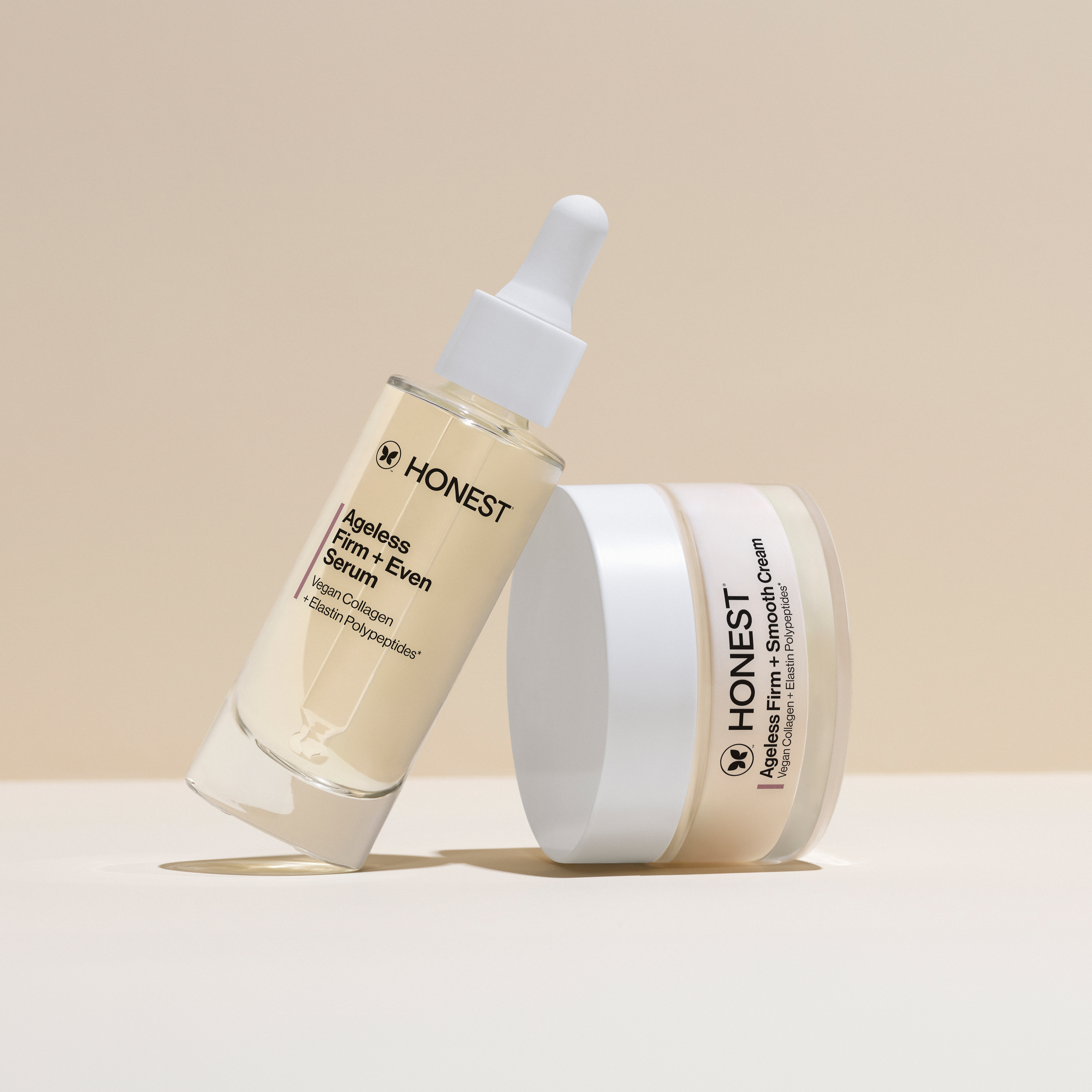 For the perfect blend of Collagen and Elastin Polypeptides, add Honest® Ageless Firm + Even Serum and Honest® Ageless Firm + Smooth Cream both formulated with these powerhouse ingredients.