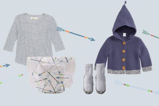 Organic Cotton Hooded Cardigan | Little Peanut Thermal T-Shirt | Swedish Slipper Moccasins | This Way, That Way Diaper