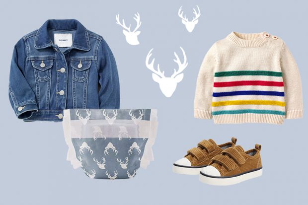 Colorful Knit Sweater | Denim Jacket | Corduroy Sneakers | Yes, Deer Diaper